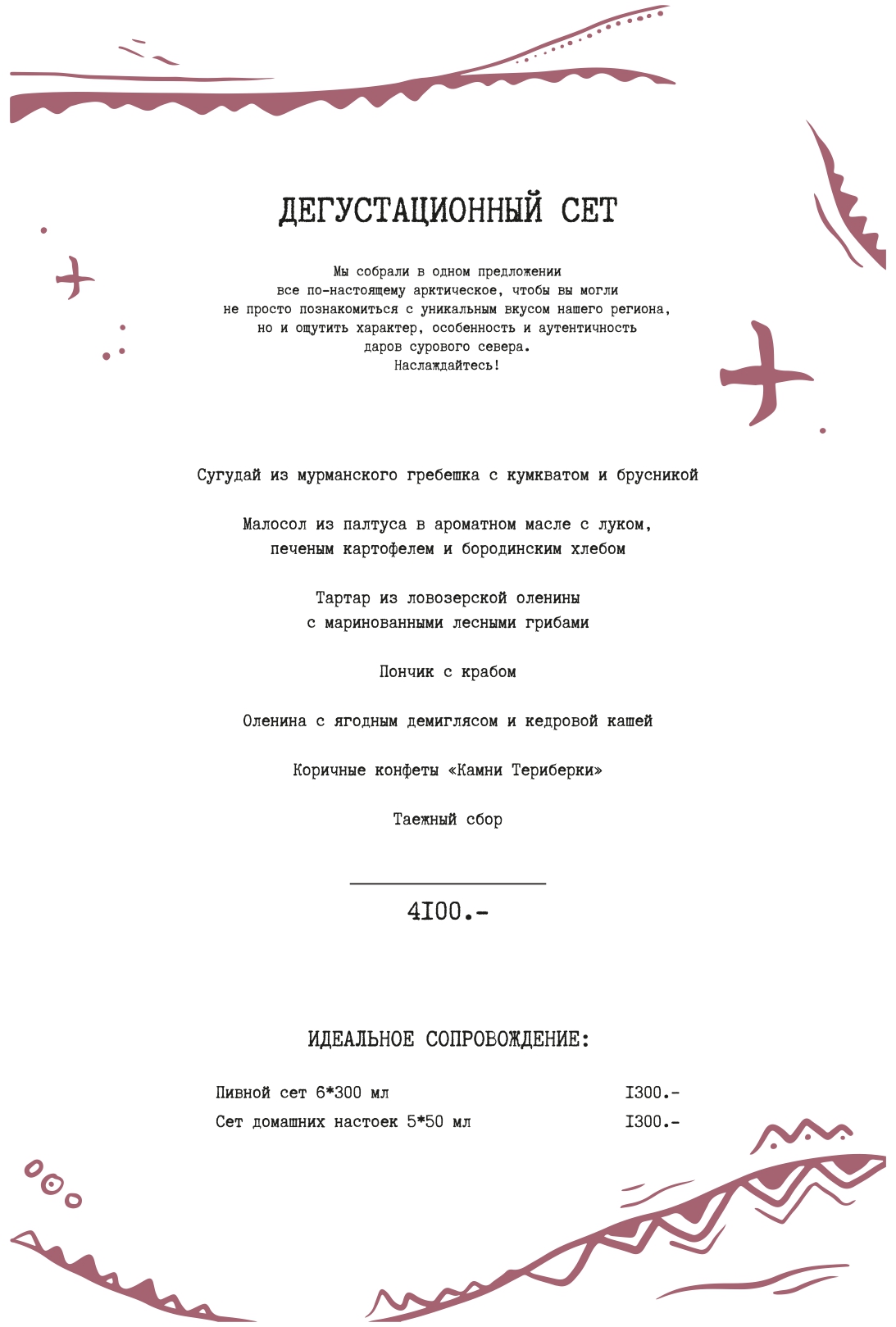Третьим источником живого огня является трехтонная печь с вращающимся камнем Marana, которых всего в России четыре. В этой уникальной для мурманского региона печи каждый день готовят пять видов пиццы на пышном, нежном тесте: фирменную Sampo, с палтусом, лососем, масляной рыбой и икрой, с брискетом, кабаном и индейкой, с четырьмя видами сыров из собственной сыроварни, с лесными грибами.