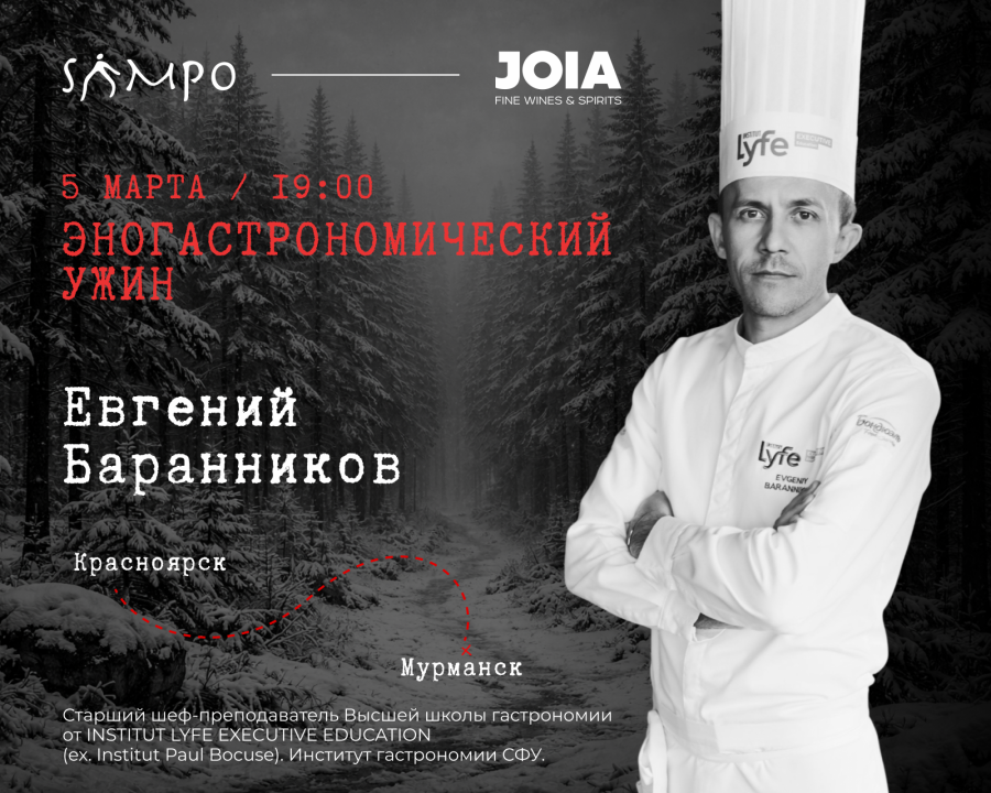 Третьим источником живого огня является трехтонная печь с вращающимся камнем Marana, которых всего в России четыре. В этой уникальной для мурманского региона печи каждый день готовят пять видов пиццы на пышном, нежном тесте: фирменную Sampo, с палтусом, лососем, масляной рыбой и икрой, с брискетом, кабаном и индейкой, с четырьмя видами сыров из собственной сыроварни, с лесными грибами.